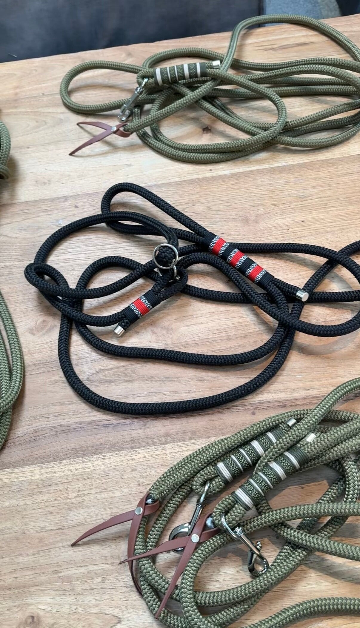 Voor op maat gemaakte Leadropes, halstertouwen en andere trainingsartikelen neem gerust contact op via whatsapp. Zowel kleur en patroon als lengte en dikte.